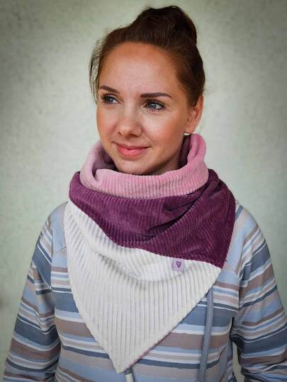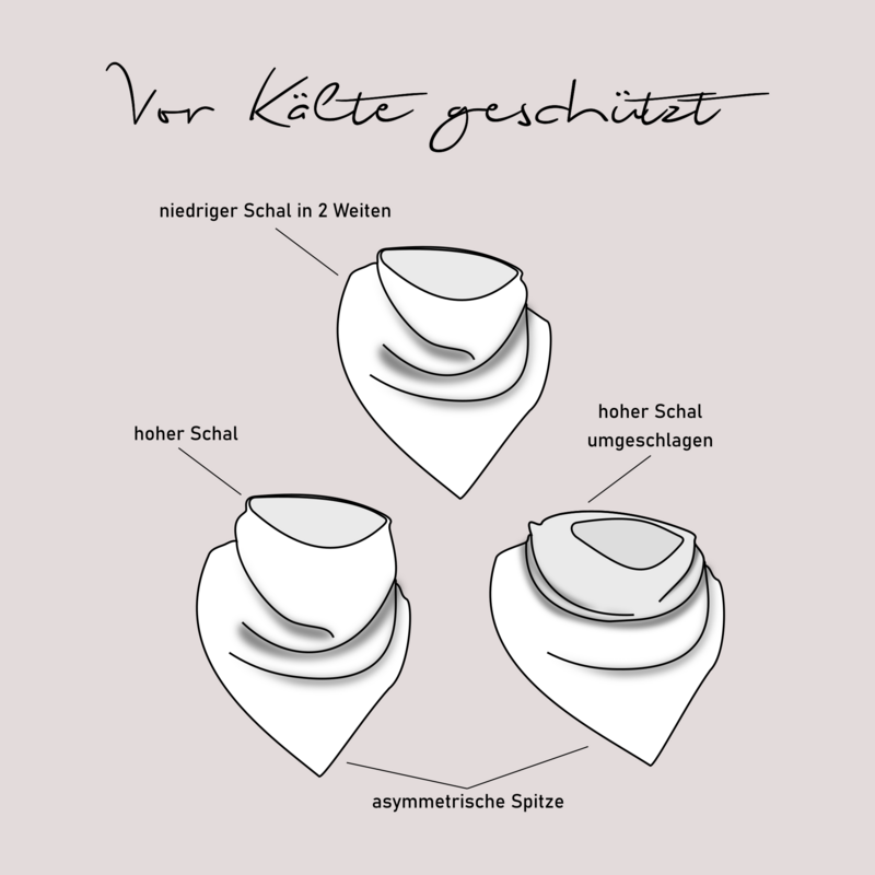 Dieser Schnitt für ein Dreieckstuch in Loopschalform, aus diversesten Materialien nähbar, mit 2 Höhen und 2 Weiten für schmückende Tücher oder kuschelige Schals ist ein super Anfängerprojekt und auch eine super Geschenkidee.