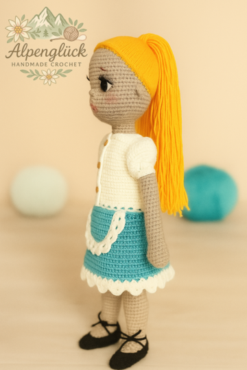 Mit dieser liebevoll gestalteten Häkelanleitung kannst du Tilda – oder jede ähnliche Häkelpuppe – in ein klassisch-märchenhaftes Outfit kleiden.