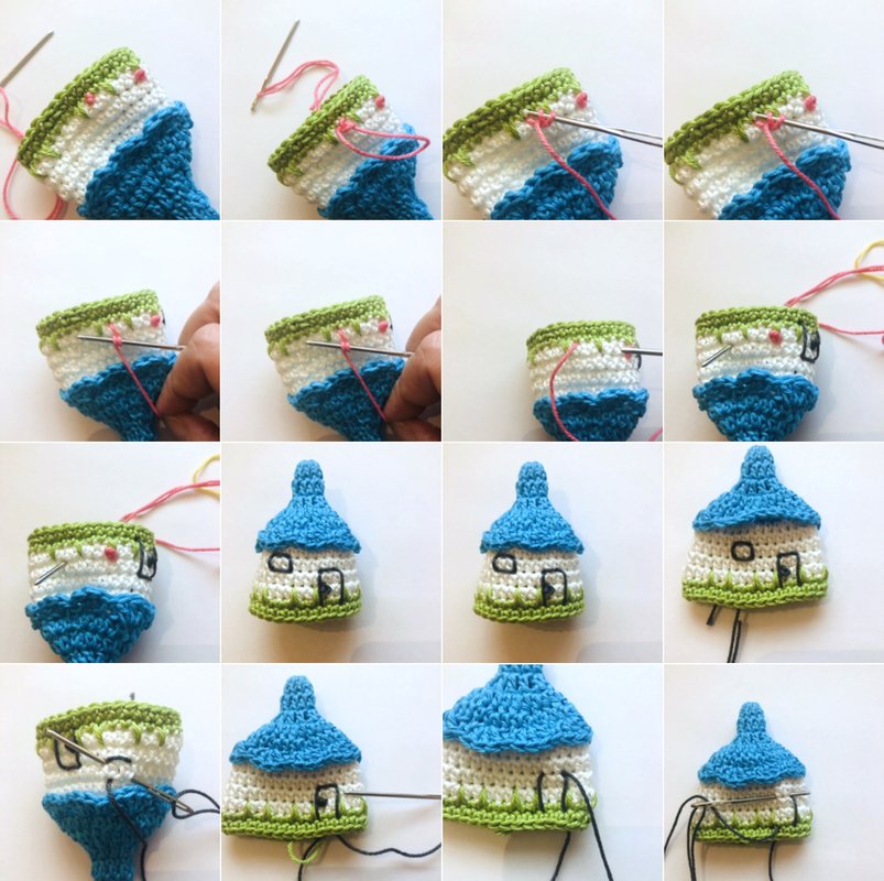 Das Häkeln dieser Häuschen ist relativ einfach und eignet sich daher auch für Anfänger. Grundkenntnisse im Häkeln (Kettmasche, feste Maschen, halbe, normale Stäbchen, Zu- und Abnahmen) werden vorausgesetzt.