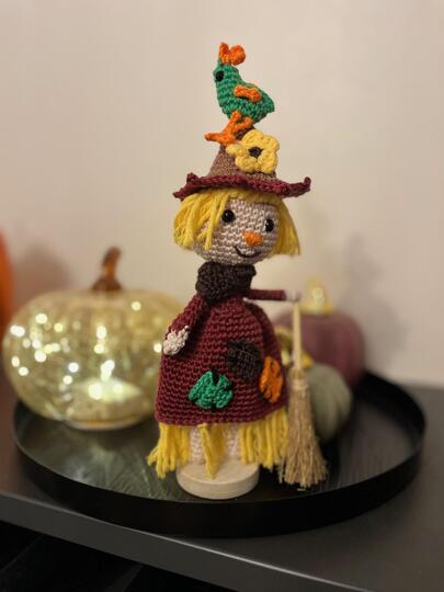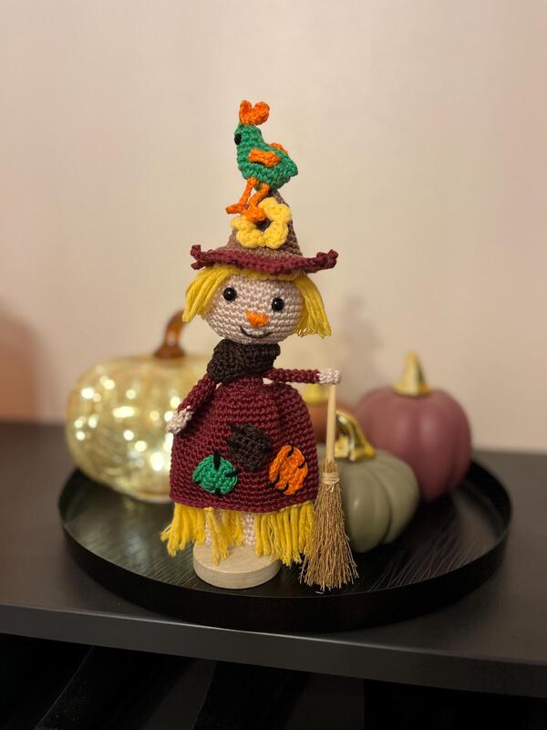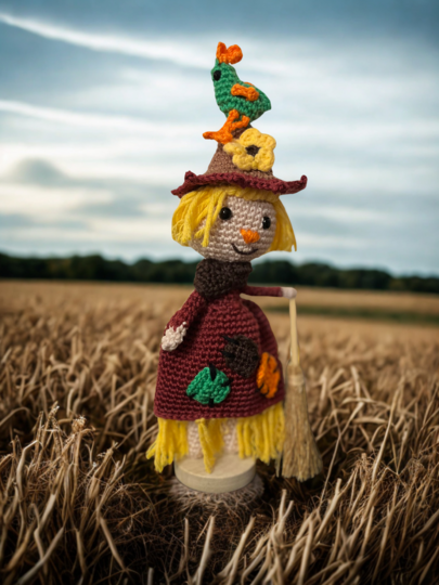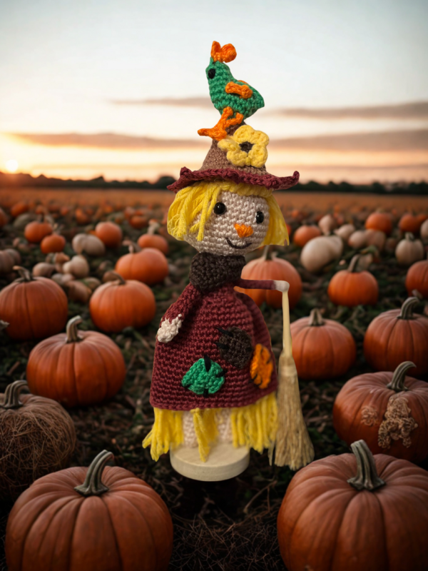 Mit dieser detaillierten Häkelanleitung kannst du Schritt für Schritt deine eigene Amigurumi-Vogelscheuche häkeln – mit hübschem Kleid, herbstlichen Farben und liebevollen Strohdetails. Perfekt als Dekoration für Herbst, Erntedank oder Halloween, oder als originelles Geschenk für Handarbeitsfans.