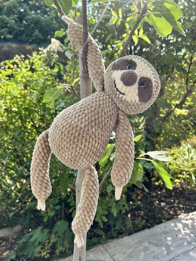 Hier bekommst du eine Schritt für Schritt Anleitung (pdf Datei zum Download), nicht das fertige Produkt, für das Faultier Edward.