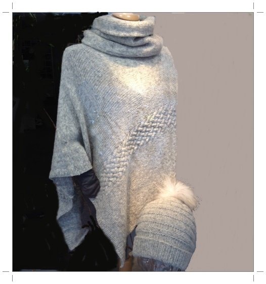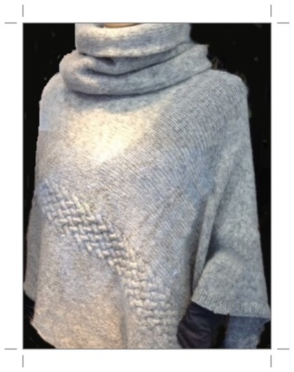 Der Poncho wird wie ein Schal gestrickt, später aufeinandergelegt und nur an einer Seite zusammengenäht.