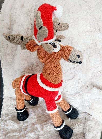Pünktlich zur Vorweihnachtszeit habe ich diesen "Weihnachtselch" mit vielen Details entworfen, gehäkelt, und hierfür eine detaillierte Schritt für Schritt Anleitung erstellt.