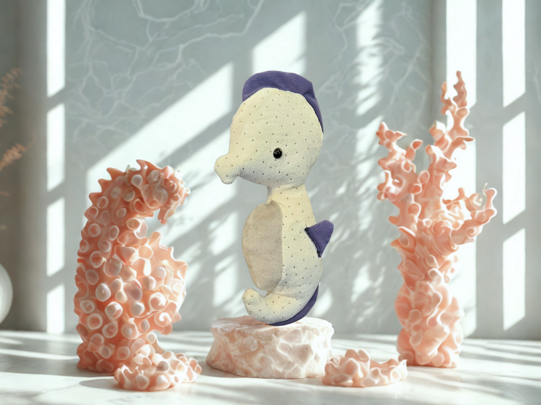 Man sagt, dass Seepferdchen Glücksbringer sind. Als ich Maru entworfen habe, dachte ich an stille Sommerabende am Meer: das leise Rauschen, warmen Sand unter den Füßen und dieses Gefühl, dass alles gut ist.
