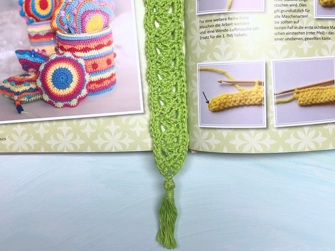 Mit dieser Häkelanleitung entsteht in weniger als 20 Minuten ein schönes Lesezeichen, das man prima verschenken oder auch selbst behalten kann. Da macht man am besten gleich zwei, oder drei … Achtung: Suchtpotenzial!