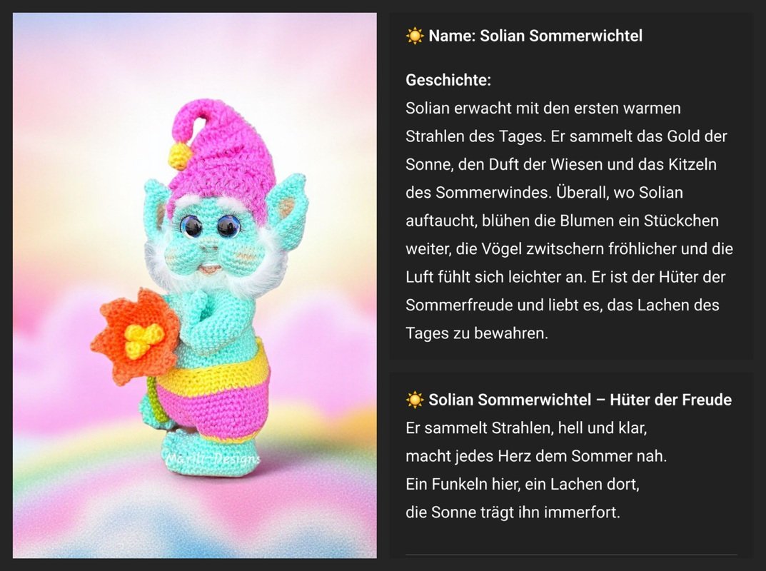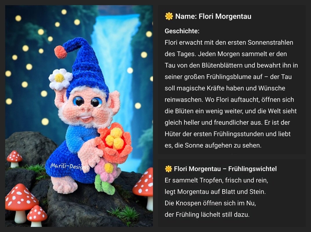 Diese bezaubernden Jahreszeitenwichtel bringen das ganze Jahr über Freude und Farbe in dein Zuhause! Mit ihren großen, glänzenden Augen, den liebevoll gestalteten Mützen und den bunten Blumensträußen sind sie ein echter Hingucker – ob als Frühlingsgruß, Sommerdeko oder einfach als Wintergartendeko. Die Anleitung enthält eine ausführliche Schritt-für-Schritt-Beschreibung mit vielen Detailfotos, sodass du jeden Wichtel in seiner ganzen Pracht nacharbeiten kannst. Die Anleitung ist auf den Chenillewichtel ausgelegt. Der Baumwollwichtel wird exakt gleich gehäkelt. Durch das Modellieren erhällt jeder Wichtel trotz der gleichen Anleitung einen individuellen Gesichtsausdruck. Dies macht ihn zu einem einzigartigen charmanten Wesen.