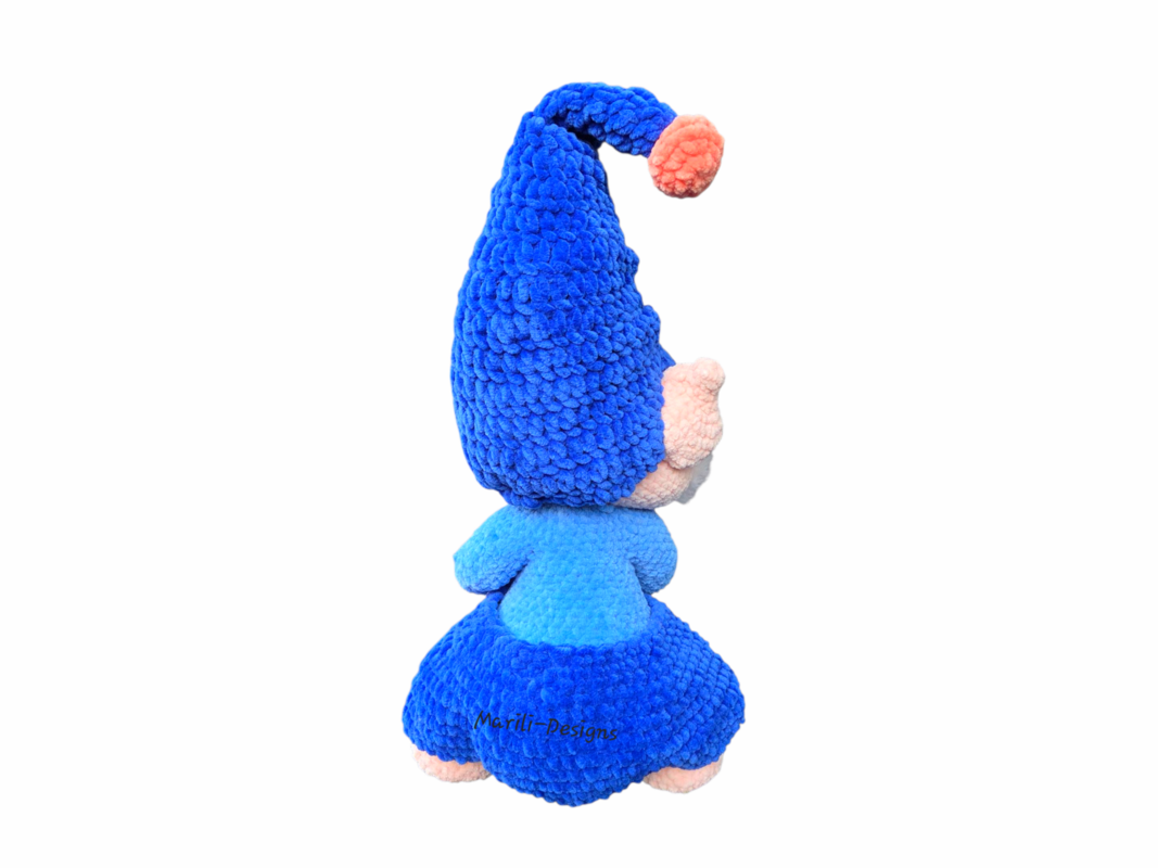 Mit den angegebenen Materialien wird die Figur in Chenille ca. 45 cm und in Baumwolle 22 cm groß.