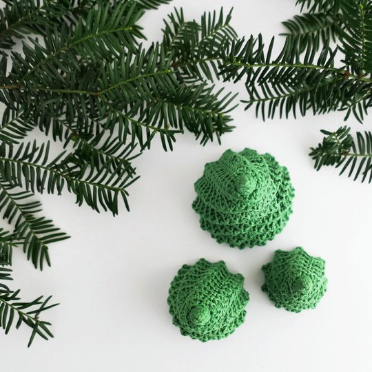 Da wir lieber häkeln als nähen, wird der Tannenbaum in einem Stück gehäkelt, ganz ohne lästiges Fädenvernähen.