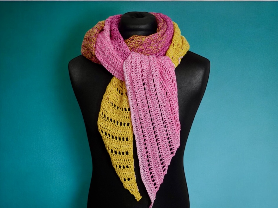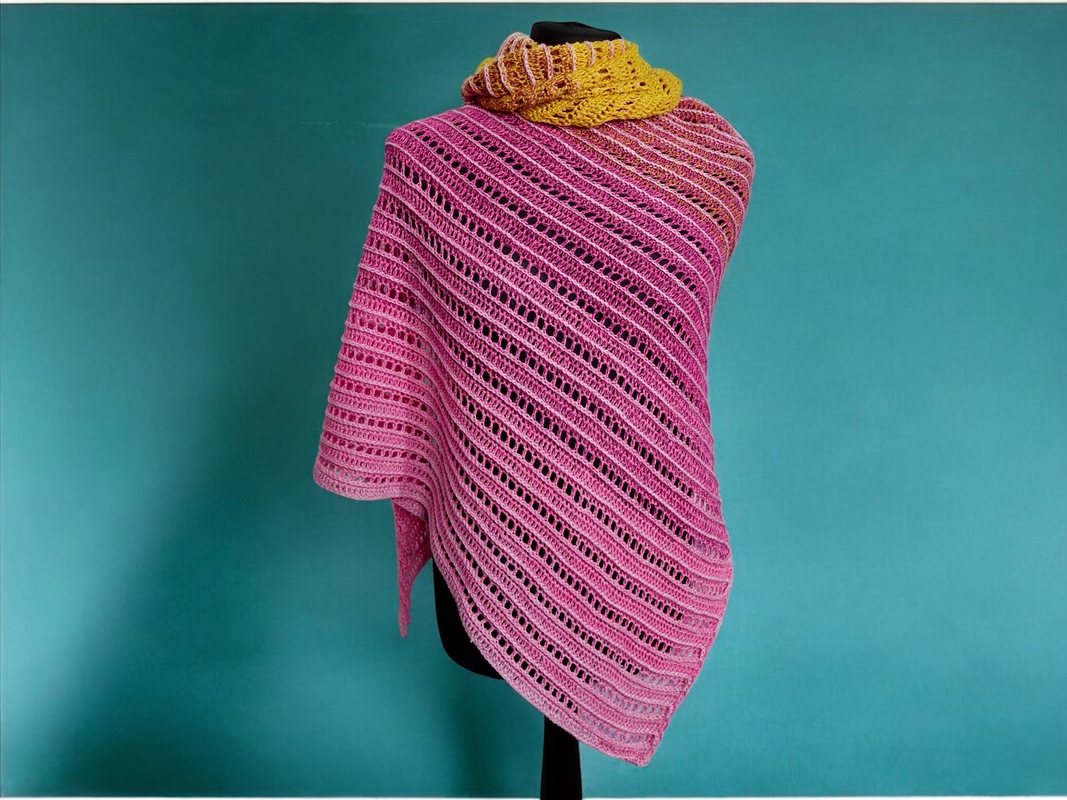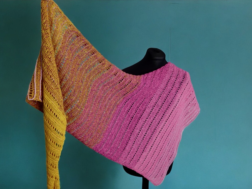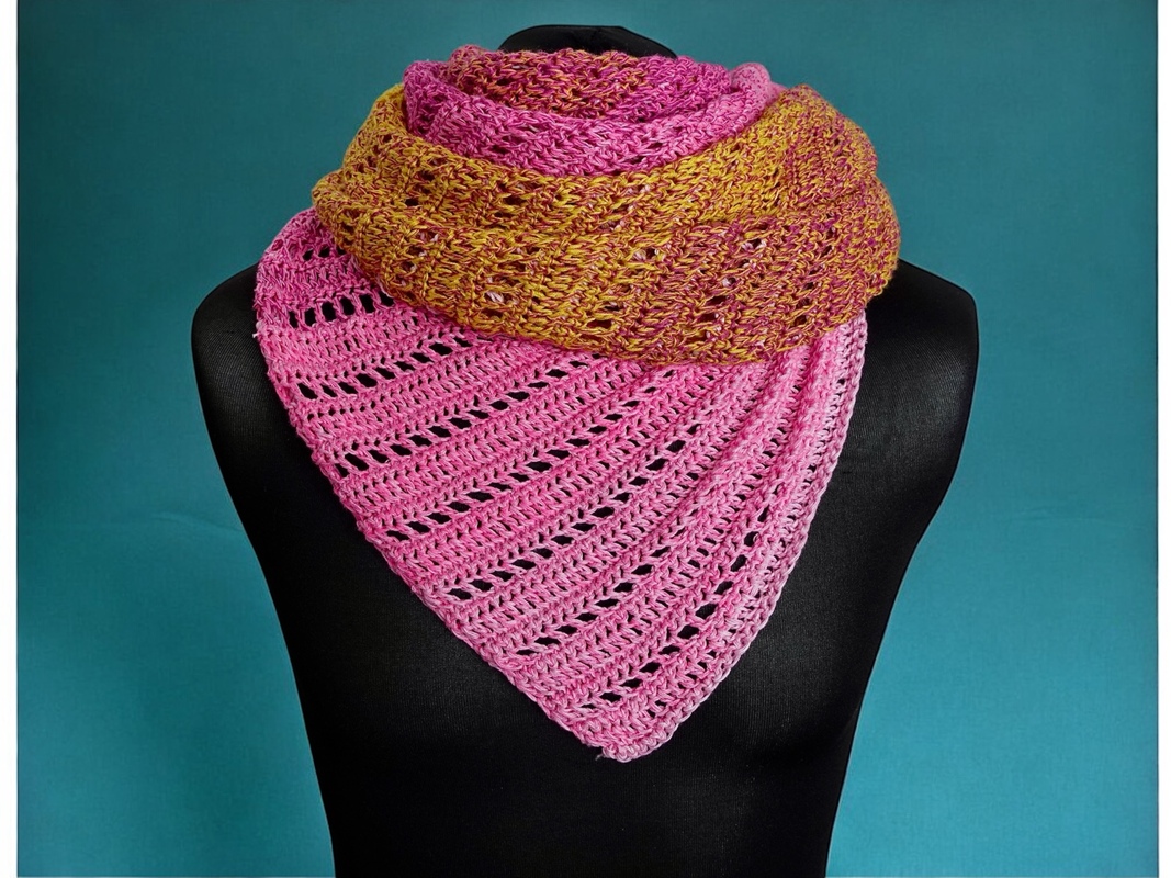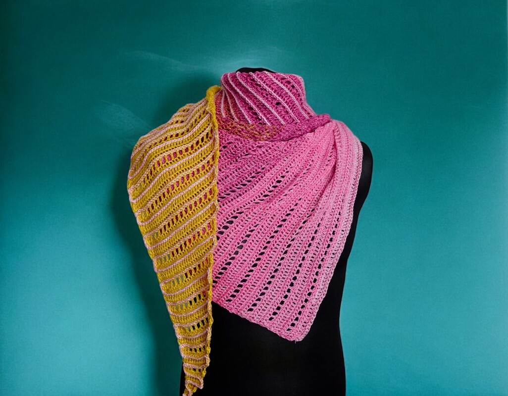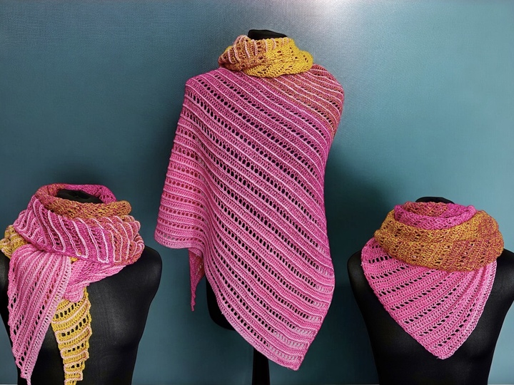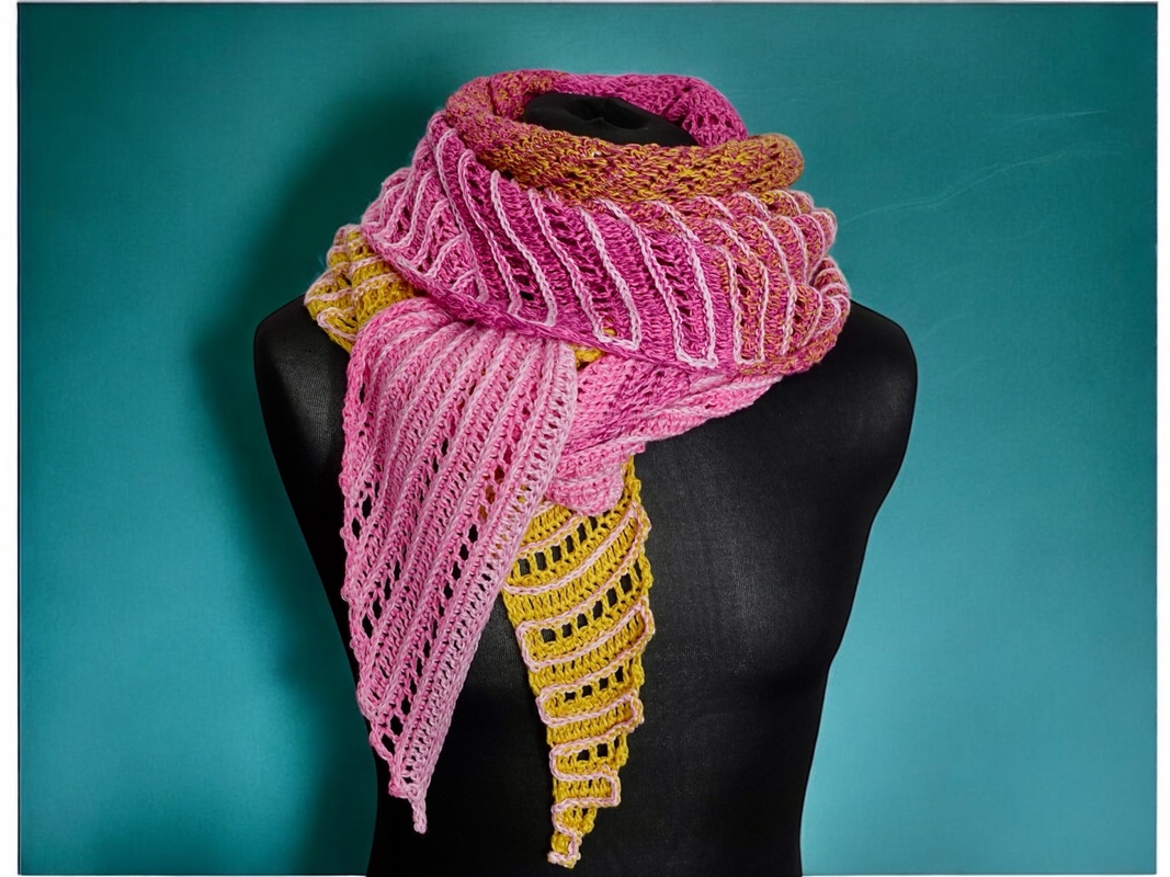 Dieses asymmetrische Häkeltuch ist das perfekte Projekt für alle, die einfache Muster mit einem spannenden Look kombinieren möchten. Das Grundmuster besteht aus nur drei Reihen, die sich ganz leicht merken und entspannt nebenbei häkeln lassen. Das Besondere: Du kannst dein fertiges Tuch auf der Vorderseite mit einem grafischen Muster verzieren - so entstehen zwei Seiten mit zwei ganz unterschiedlichen Looks. Je nachdem, wie du das Tuch trägst, bekommt es jedes Mal einen neuen Ausdruck.
