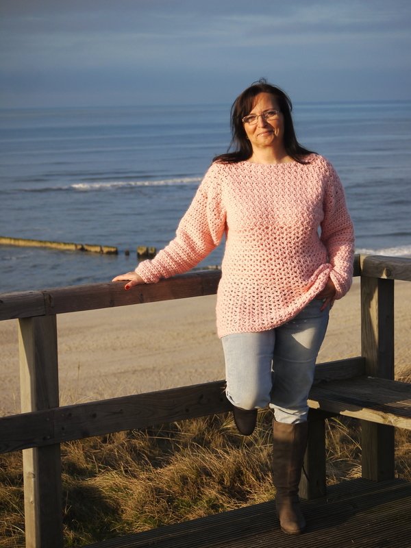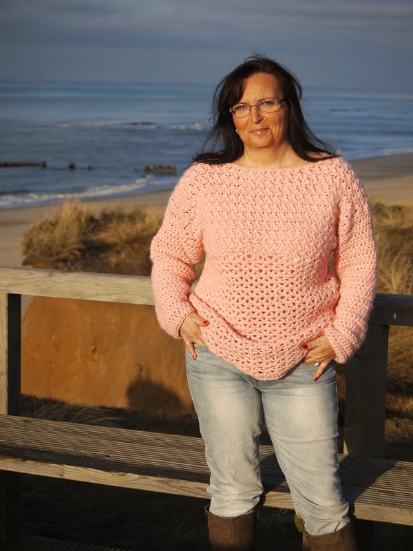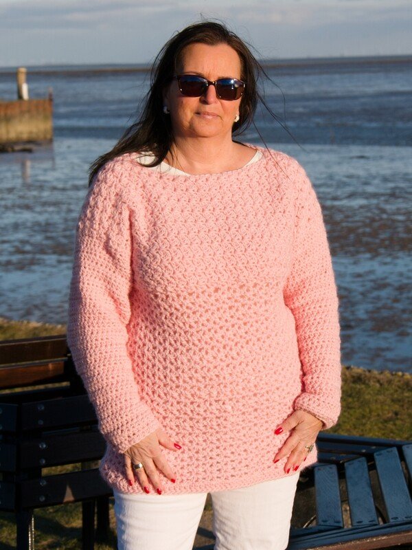 Eine richtig schöner Herbstpullover mit blickdichtem Muster. Zwei schnell einprägsame Muster lassen Dich bei Deinem Häkelstück schnell voran kommen.Die Ärmel im einfachen Stäbchenmuster runden den Pulli ab.Natürlich kannst Du auch mit mehreren Farben arbeiten und selbstverständlich ist die Anleitung vom Pulli für alle Garne geeignet.