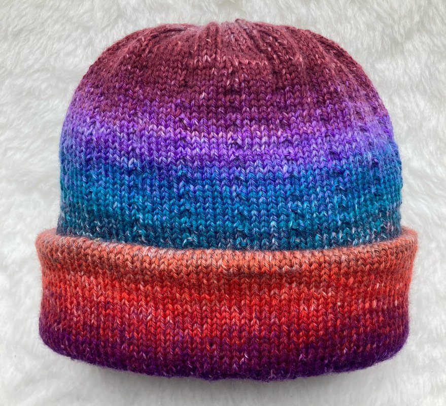 Die Mütze wird von unten nach oben mit einem doppelt gestrickten Mützenrand gearbeitet. Später schlägst Du ihn um und Du erhälst einen dritten Rand. Dadurch hält Dich die Mütze in der kalten Jahreszeit schön warm.