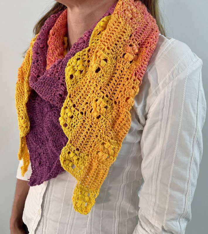 Dann versuche doch das Corner to Corner Tuch aus. Ursprünglich für Decken und Motive konzipiert, kannst du dir damit auch ein schönes Tuch zaubern, das je nach Garnauswahl luftig oder kuschelig gearbeitet erden kann.