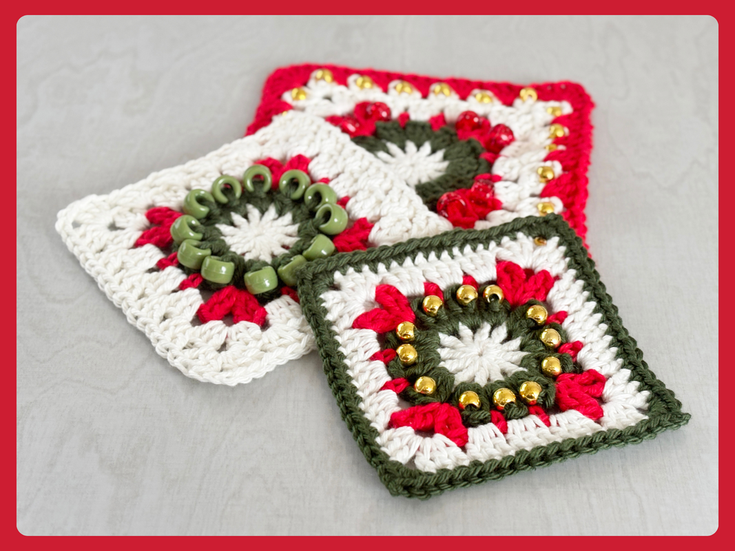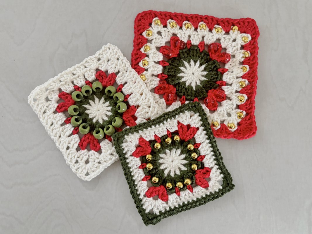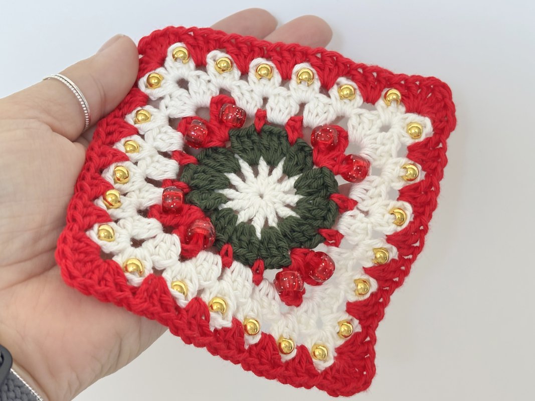 Diese liebevoll gestaltete Häkelanleitung enthält drei verschiedene Designs eines Granny Squares im Weihnachtskranz-Stil – jedes mit hübschen eingehäkelten Perlen, die deinem Projekt ein besonderes Glitzern verleihen.