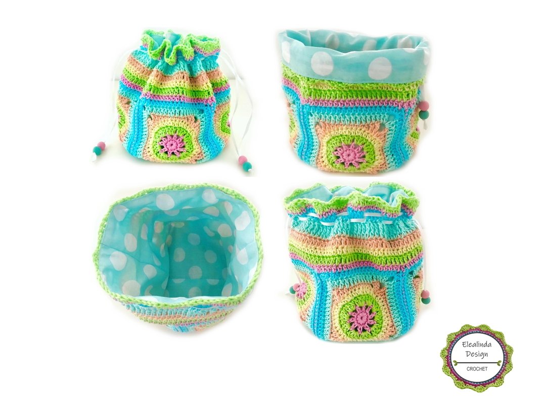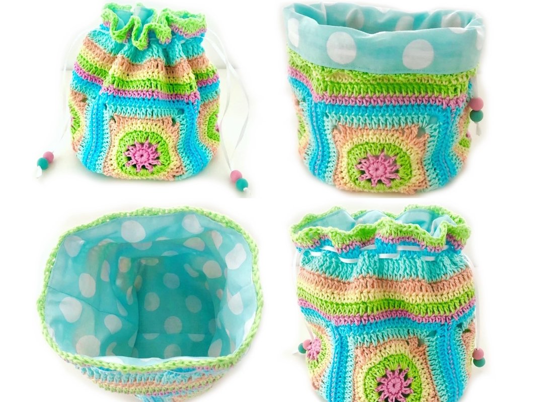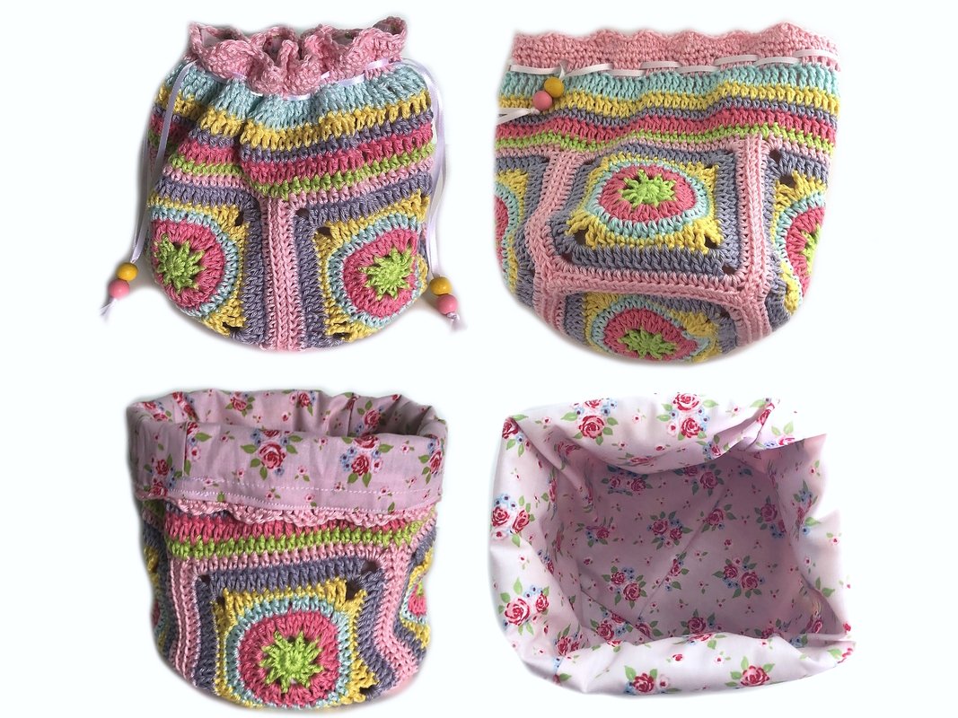 Das Granny-Square-Motiv an sich eignet sich auch prima für alle anderen denkbaren Häkelprojekte. Und auch als Geschenkverpackung oder Mitgebsel zu vielerlei Anlässen ist dieser Schatzbeutel bestimmt eine tolle, bunte Idee ….
