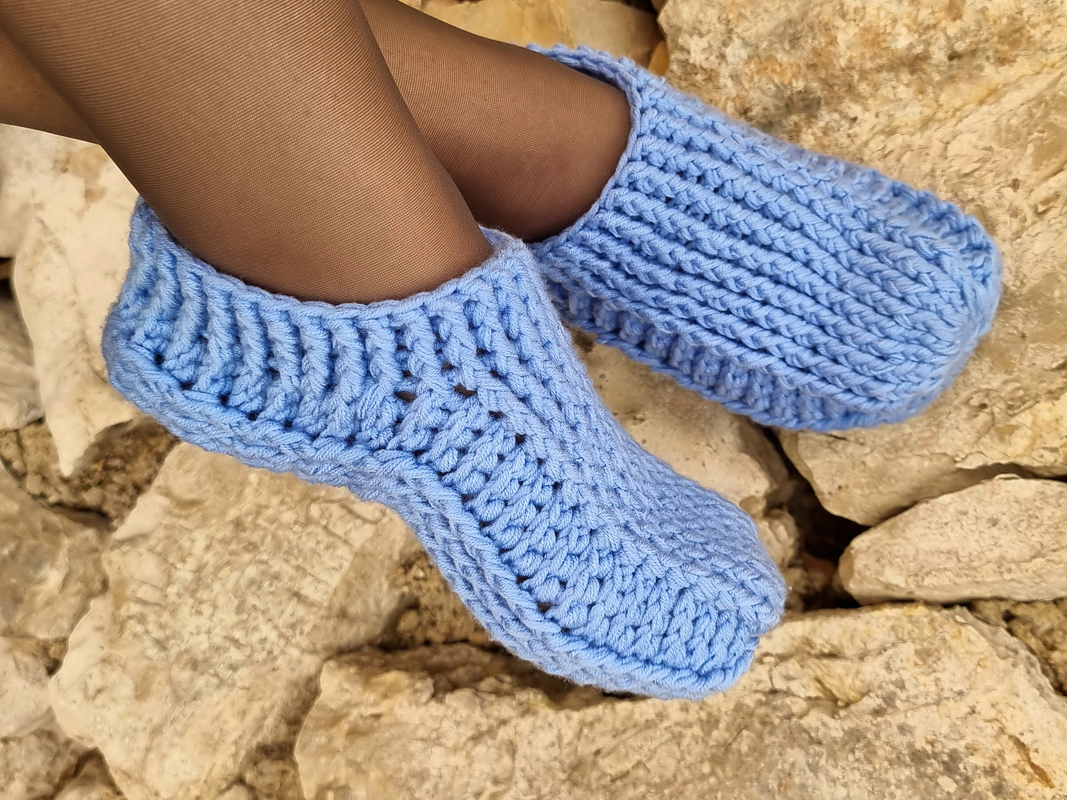 Sie können Hausschuhe in der gewünschten Größe häkeln.