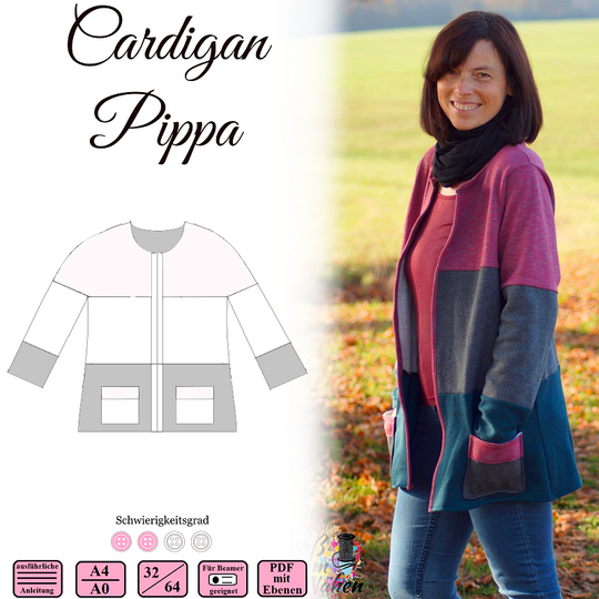 Pippa ist ein kuscheliger Cardigan, welcher durch seine Unterteilungen auch ein echter Blickfang ist.