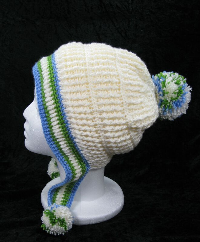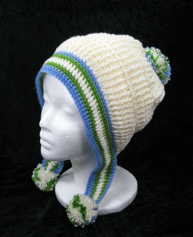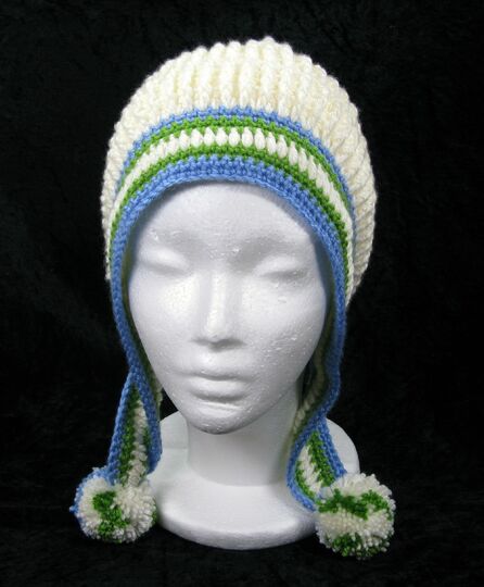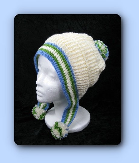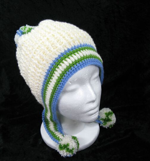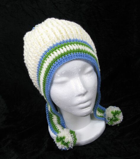 Mütze wird zum Teil in Hin und Her- Reihen gehäkelt, der obere Teil wird in Runden gehäkelt.