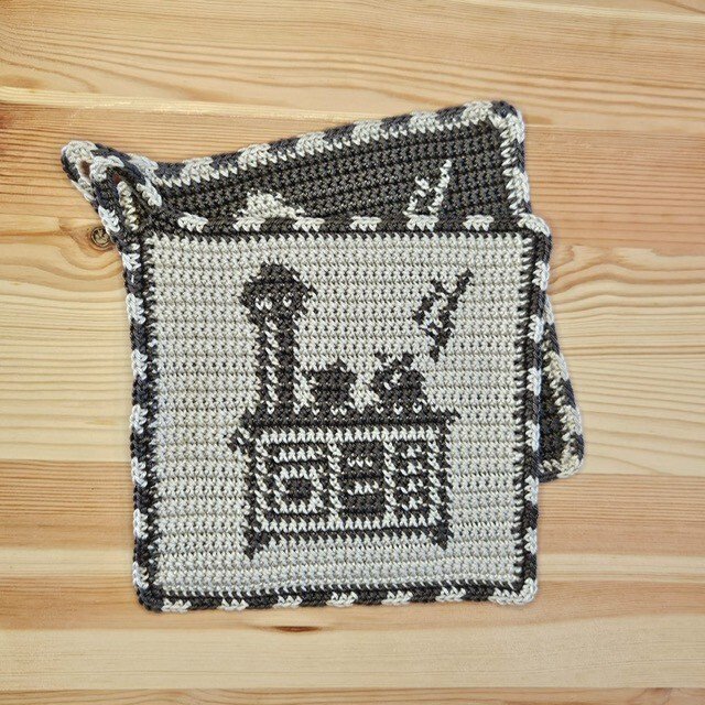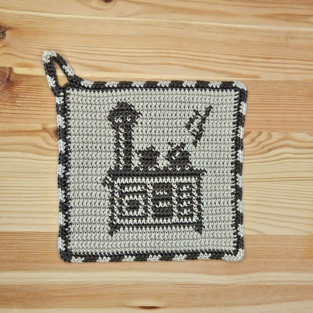 Diese Topflappen sind der Klassiker unter den gehäkelten Topflappen. Sie schützen die Hände nicht nur vor z.B. zu heißen Topfgriffen, sondern sie verschönern auch jede Küche. Gleichzeitig können sie auch als Untersetzer verwendet werden.