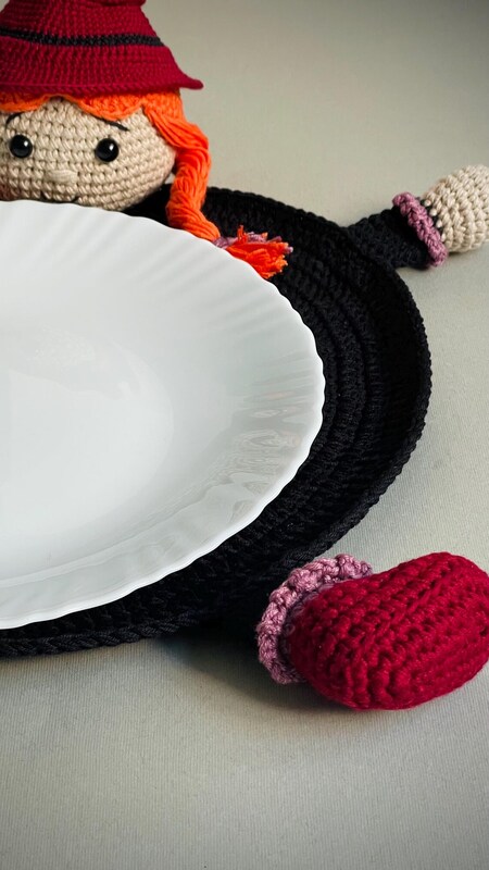 Dies ist eine Häkelanleitung für eine Hexen-Tischset.