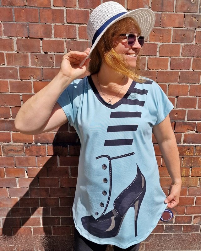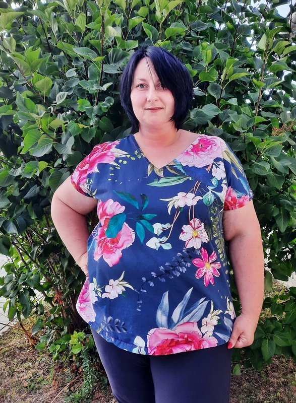 Das Shirt ist ein idealer Begleiter für eure Outfits, ein Basic-Schnitt für Freizeit- oder Sportmode, der sehr schnell genäht ist. Vom Grundschnitt ist es ein leicht tailliertes Kleidungsstück, hüftlang, abgerundetem Saum und mit ganz kurzen integrierten Ärmeln. Es ist ein Mehrgrößenschnitt, sodass ihr kinderleicht auch über mehrere Größen hinweg das SM für euch anpassen könnt.