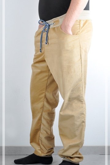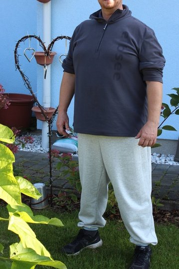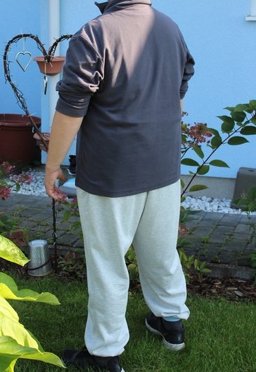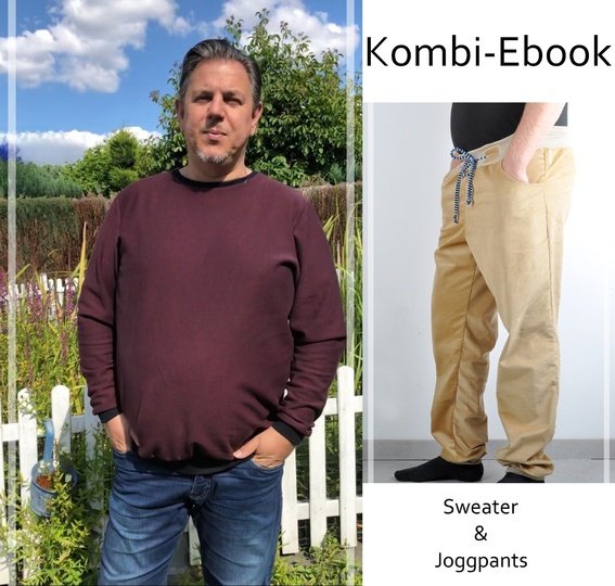 Mit dieser Anleitung und dem Schnittmuster könnt ihr eine bequeme Jogginghose für Männer mit etwas mehr auf den Hüften in Gr. L/XL bis Gr. 5 XL (Maße: Taille: 112 - 122 cm | Hüfte: 116 - 135 cm) nähen. Es ist eine legere Basic-Hose mit bequemer Beinweite und Hosennahttaschen (keine Hüftpassentaschen - hierfür findet ihr im Shop ein Freebook), die aus Jersey, Sweat und Alpenfleece, aber auch aus elastischen Jeans- oder Cordstoffen genäht werden kann.