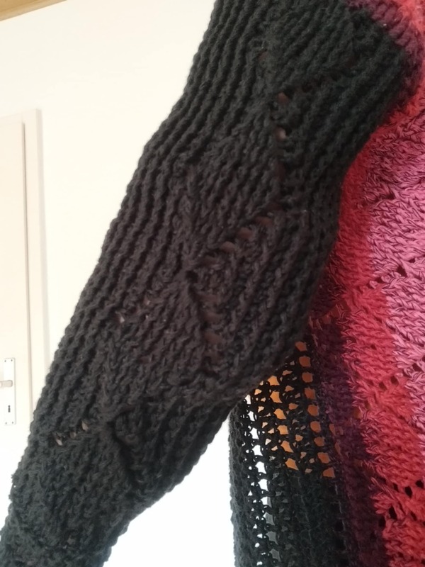 Ich habe für meinen Seelenwärmer aus Flauschbobbel ca. 1300m für den Torso inkl. Blende benötigt und ca. 200m pro ärmel