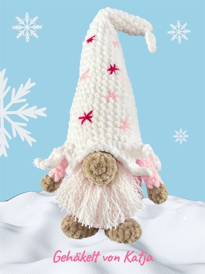 Der Wichtel variert in der Grösse sehr, je nachdem welche Wolle verwendet wird. Mein Wichtel ist 30 cm gross geworden (mit Chenille gehäkelt).