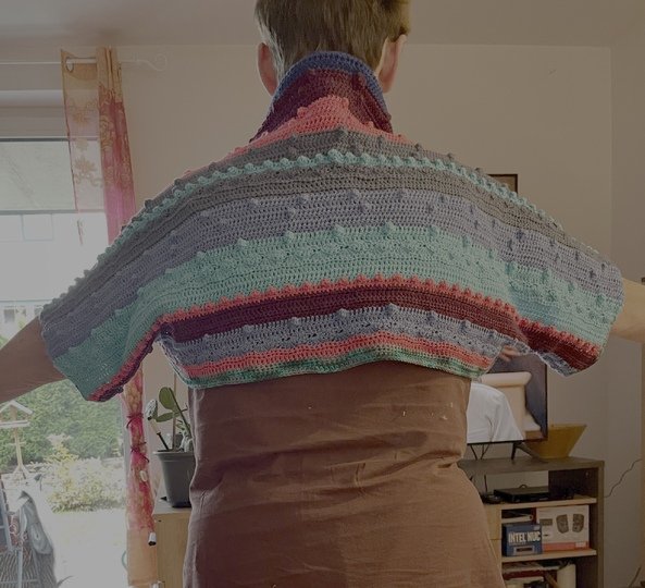 Wenn auch dir manchmal auf den Schultern kühl ist, dann empfehle ich dir mein Modell. Es ist aus 100% Wolle, pflegeleicht und schön weich.