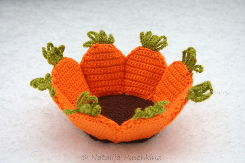 Sie können natürlich größere Körbchen häkeln - zum Beispiel mit 8 oder auch 10 Karotten. Körbchen lassen sich gut als Eier Aufbewahrungsboxen verwenden. Passen gut auf dem festlichen Tisch als Deko-Element und Aufbewahrungsbox gleichzeitig.