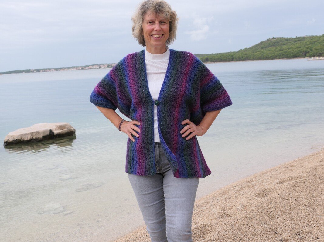 Meereshimmel ist beim Urlaub am Meer entstanden, inspiriert von den schimmernden Farbtönen zwischen Himmel und Wasser in der Abenddämmerung. Die Jacke ist wunderbar bequem und ganz einfach zu häkeln - perfekt für geübte Beginner. Du arbeitest ohne komplizierte Zu- oder Abnahmen. So entsteht ein lässiger Poncho-Cardigan, der sich herrlich überwerfen lässt - ob am Strand, auf der Terrasse oder an gemütlichen Tagen zuhause.