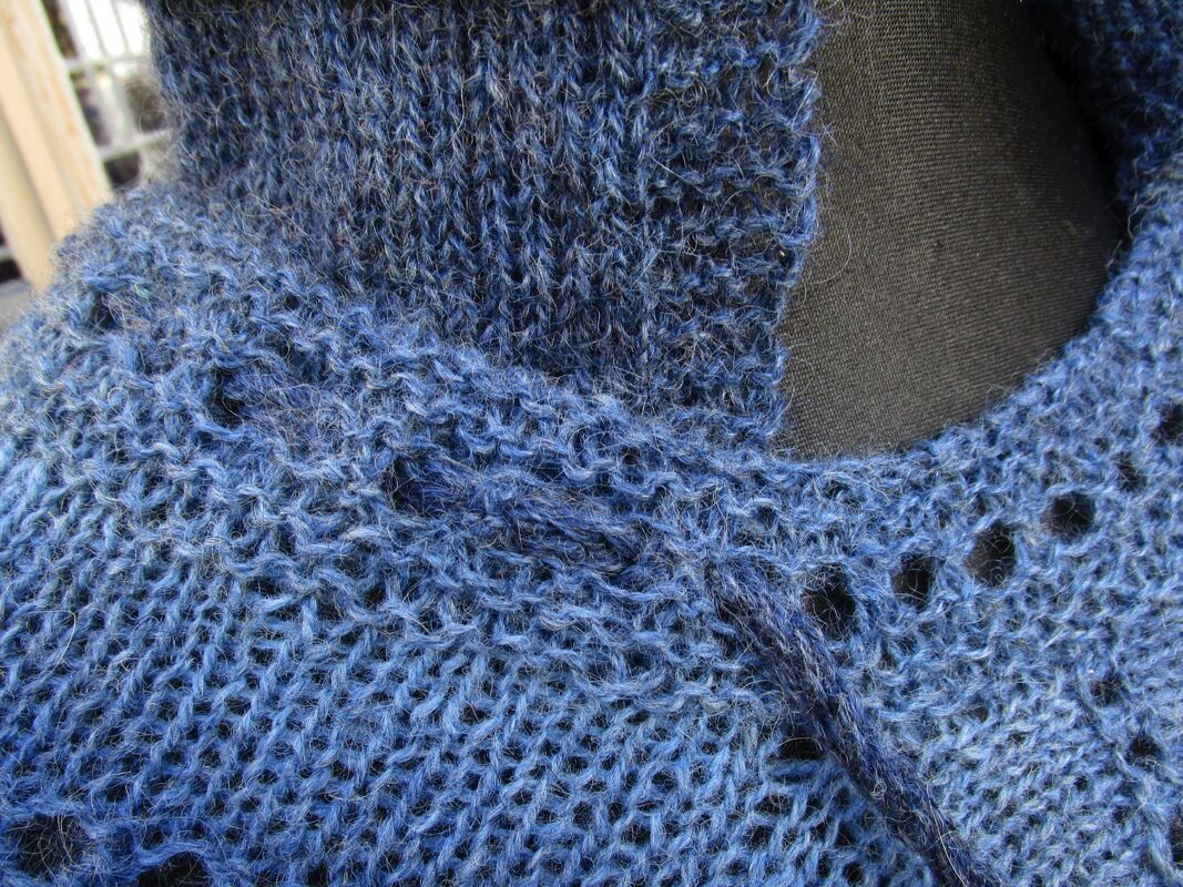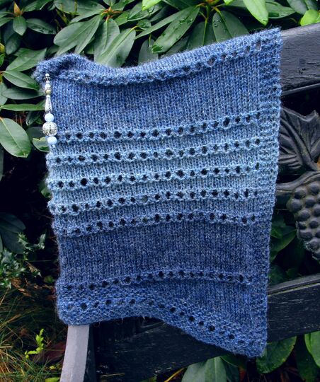 Außerdem kann man den Poncho drehen. Entweder um etwa 45 Grad, dann laufen die Lochmusterreihen diagonal.