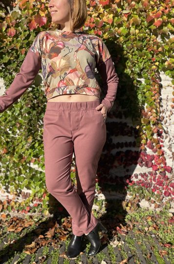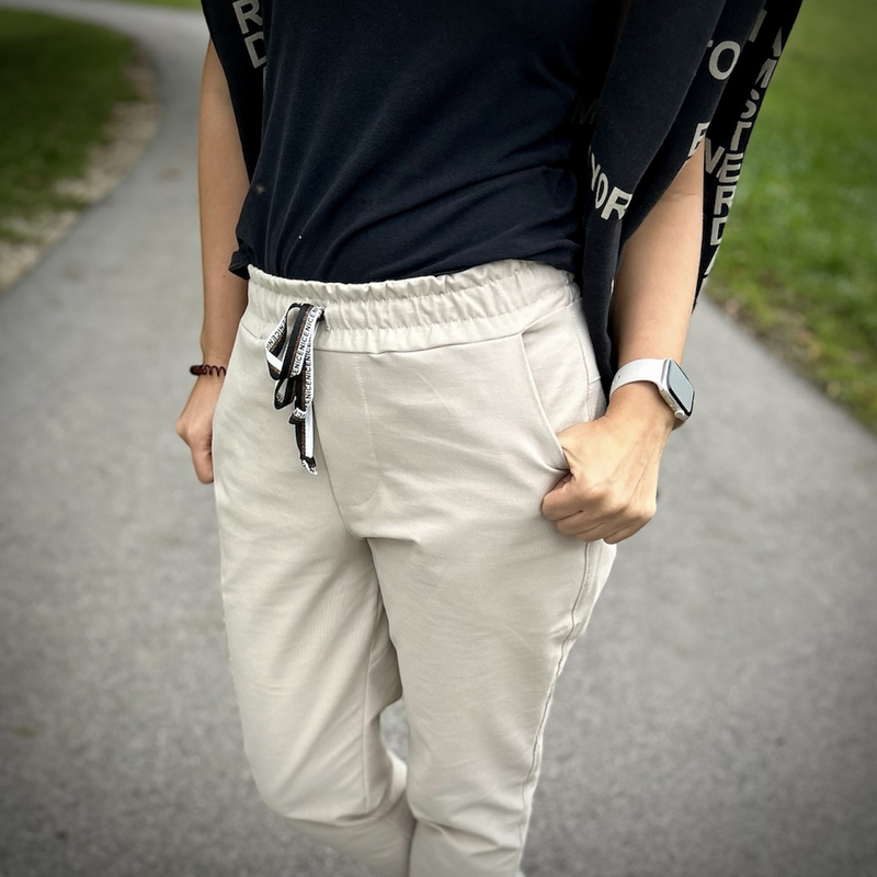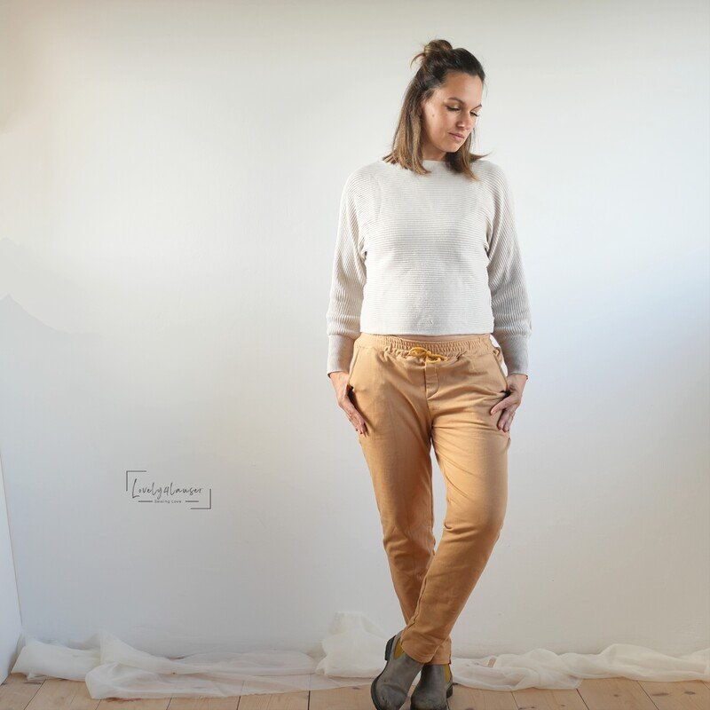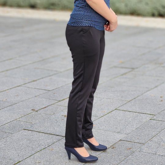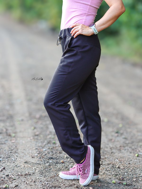 Sie kann aus dehnbaren und nicht dehnbaren Stoffen als Freizeit-, Business- oder auch als Jogginghose genäht werden.