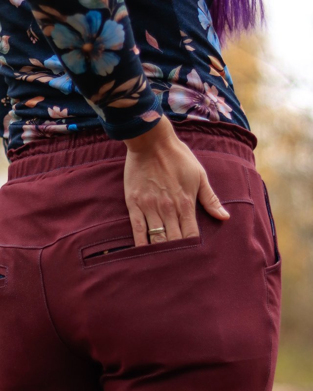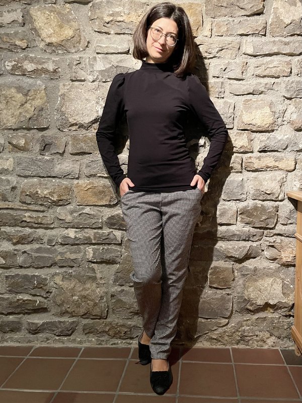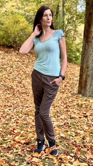 Sie kann aus dehnbaren und nicht dehnbaren Stoffen als Freizeit-, Business- oder auch als Jogginghose genäht werden.