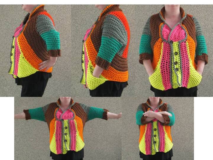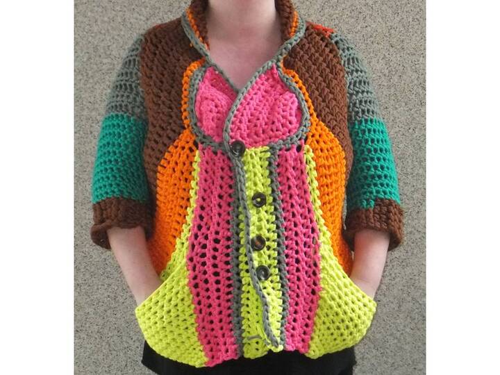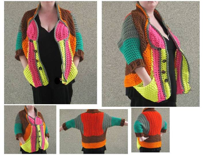 Wer Farben liebt sollte diese Häkeljacke nacharbeiten..... nicht nur zum Fasching ein toller Blickfang sondern auch um Farbe in sein Leben zu bringen.