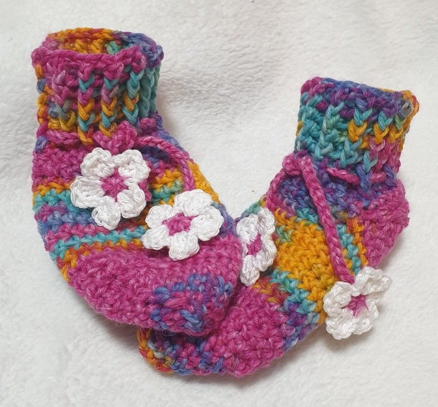 Mit dieser Häkelanleitung können diese Socken in allen Größen - von Neugeborenem bis Größe 48 - nachgearbeitet werden.