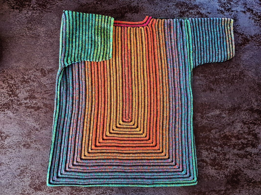 Du startest in der Mitte, von dort wächst der Pulli nach unten und in die Breite – so passt er sich deinen Maßen perfekt an.