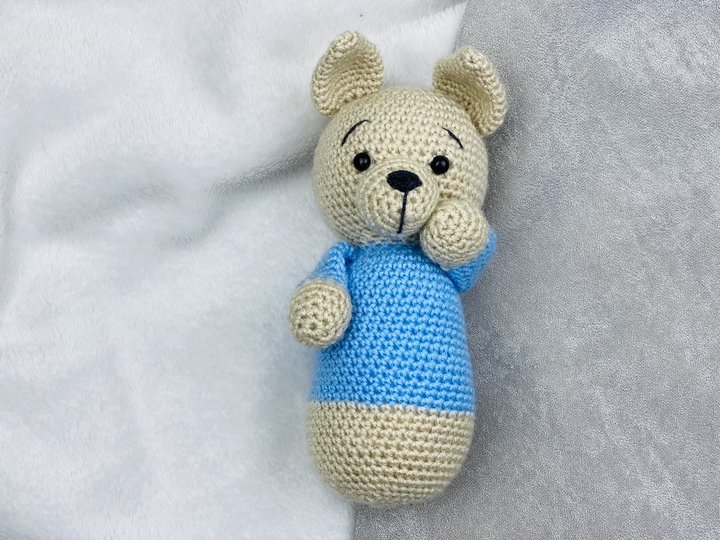 Lernen Sie unseren Welpenfreund kennen! Mit Liebe gehäkelt, ist dieser kleine Hund bereit, der erste treue Freund Ihres Babys zu sein. Der perfekte, weiche Begleiter für Kuscheln und Lächeln!