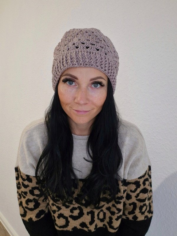 Die Mütze kann in jeder beliebigen Größe gehäkelt werden.