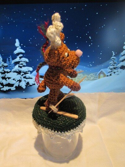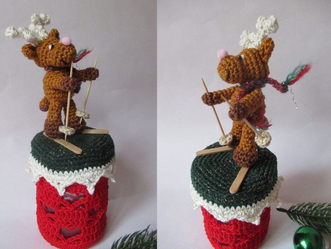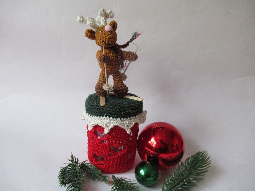 Der sportliche Elch ist eine süße Dekoration für ein selbstgemachtes Bonbonglas. Du kannst darin weihnachtliche Süßigkeiten originell verpackt verschenken. Ist der Inhalt aufgegessen, verwendet man das Glas als Windlicht mit einem LED-Licht.