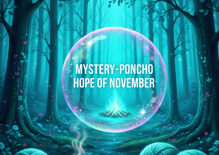 Mystery-Projekte haben etwas Spielerisches. Man weiß nie ganz genau, wann der Moment kommt, in dem plötzlich alles zusammenpasst. Bei „Hope of November“ ist dieses Staunen eingebaut: Du beginnst am Halsausschnitt, arbeitest dich Runde für Runde nach unten und spürst, wie der Poncho wächst, wie sich Linien und Weite entwickeln, wie sich die Silhouette formt. Kein Nachdenken über Nähte, keine Einzelteile, die aufeinander warten – du hast das Ganze von Anfang an in den Händen. Und genau das macht den Zauber aus.