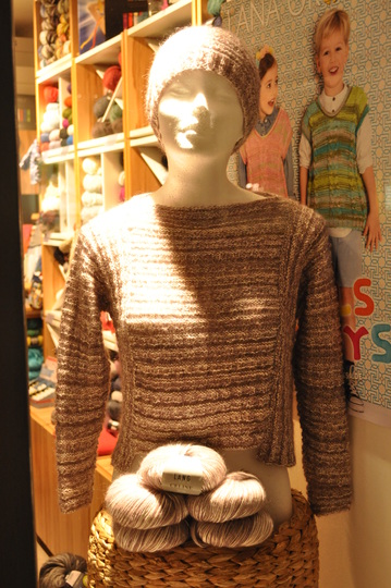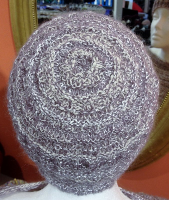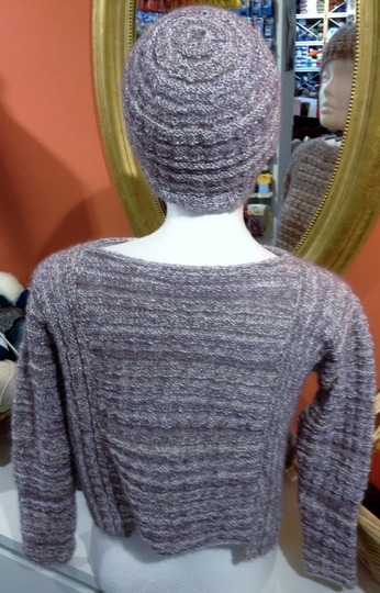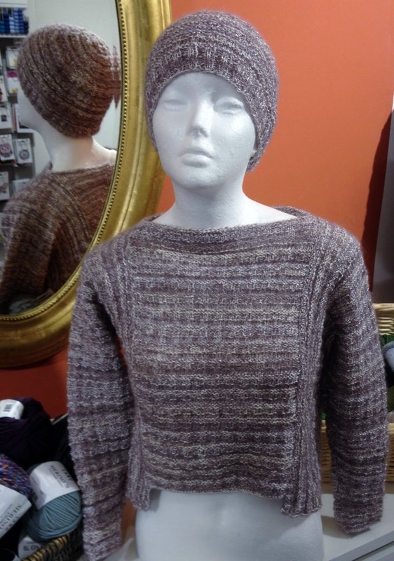 Material: LANG YARNS Celine | Farbe: 924.0048 (lila/weiß) | etwa. 350 g (Pulli), etwa 75 g (Haube)