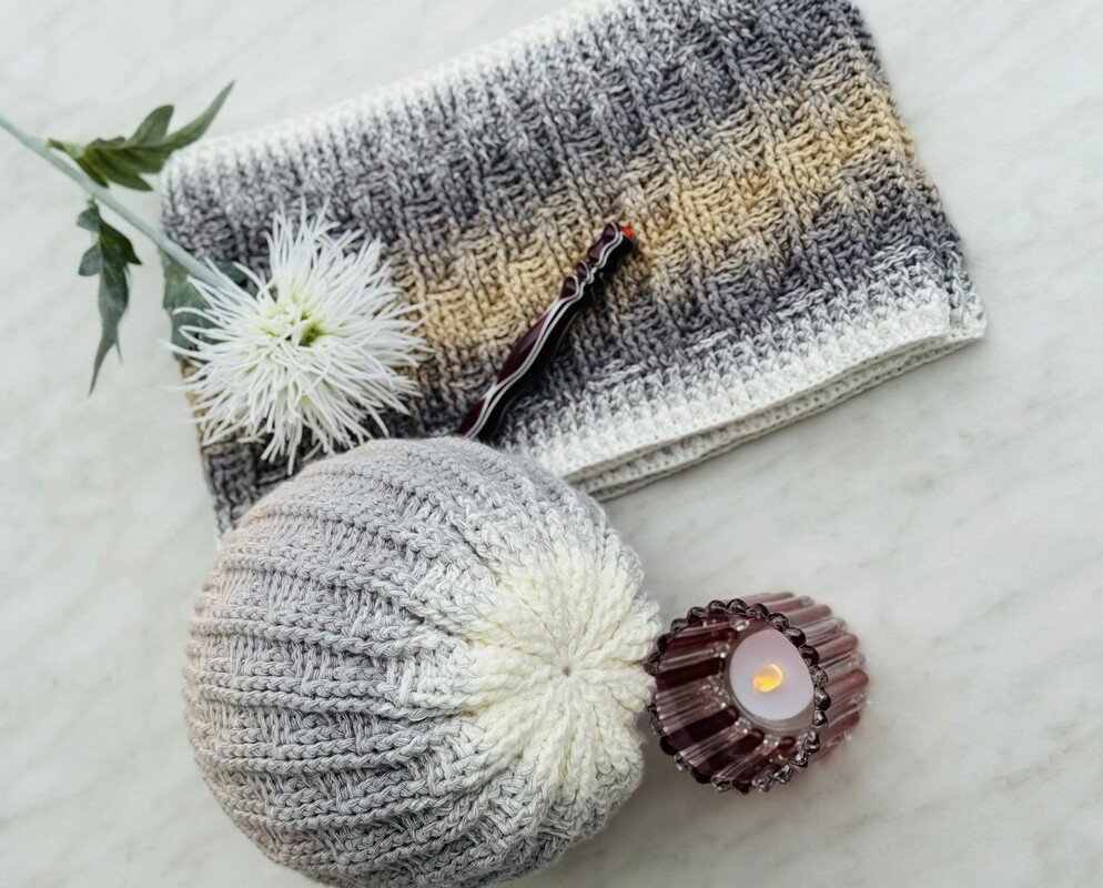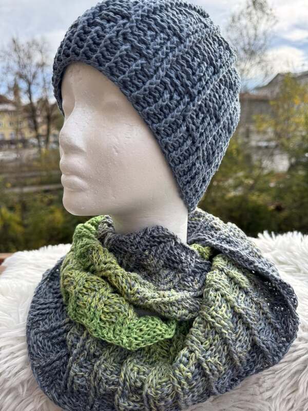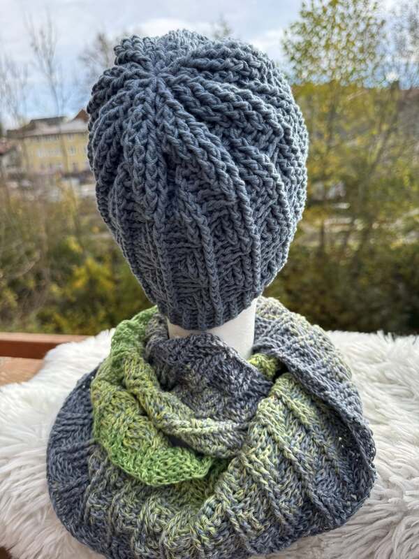 Häkelanleitung für ein Winterset bestehend aus Mütze/Beanie und Loop/Halssocke.