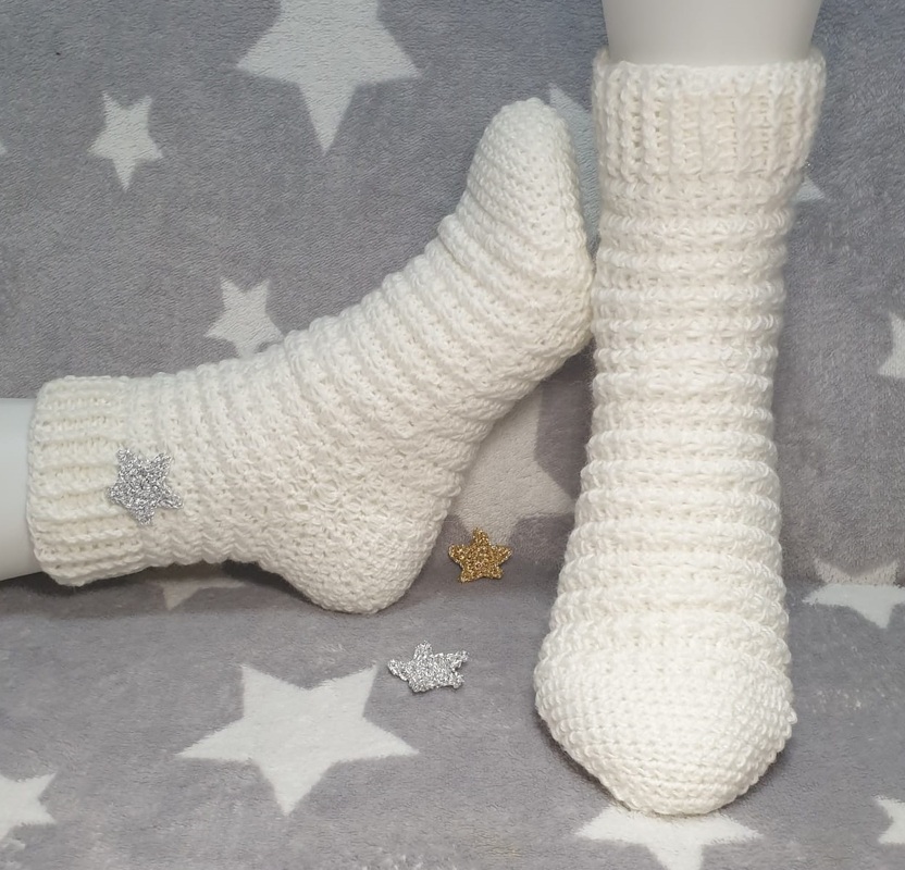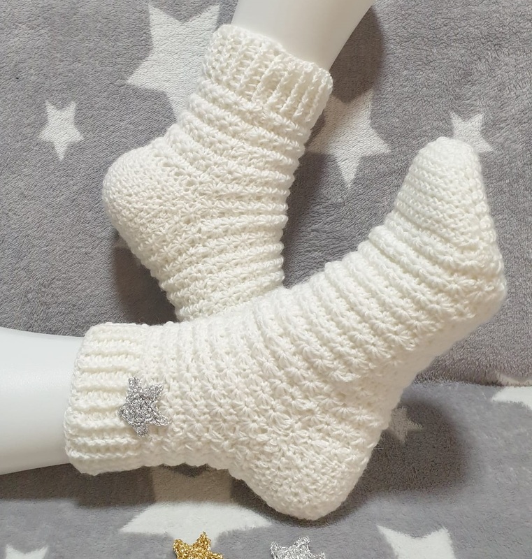 Häkelanleitung für Sternensocken cuff down / von oben nach unten gehäkelt mit Bumerang-Ferse und schöner Fußspitze