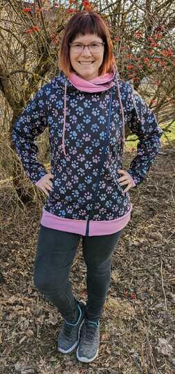 Eine kuschelig warme Hoodiejacke mit Schalkapuze und knöpfbaren Beleg, so dass alles bleibt, wo es soll, auch wenn die Jacke nicht ganz geschlossen ist.