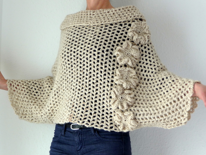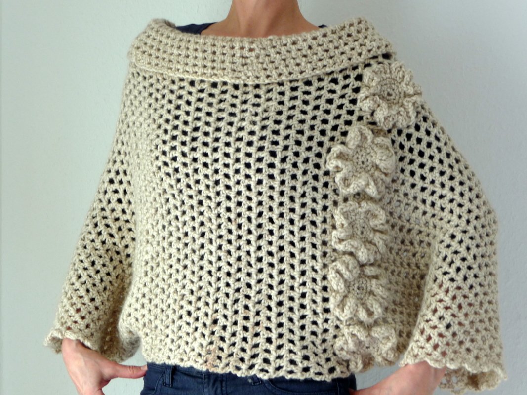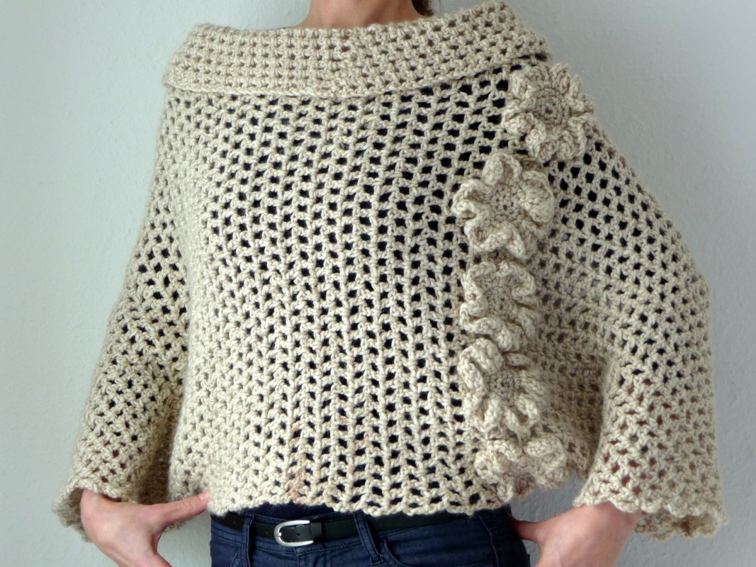 Sowohl für Frauen als auch für Mädchen ist dieser Poncho ein perfekter Begleiter für einen kalten Winter- oder Sommerabend. Ist sehr angenehm zu tragen, liegt voll im Trend und einfach für jeden Anlas gut geeignet. Die Blumen machen den Poncho zu einem Hingucker.