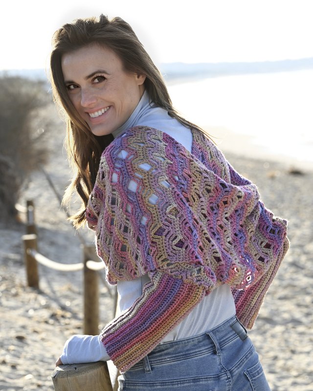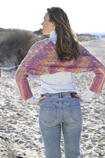 Ein Fashion-Highlight der besonderen Art. Für diesen verschlungenen Ärmelschal werden nur Luftmaschen und feste Maschen gehäkelt. Das schaffen auch Häkelanfänger. Der harmonische Farbverlauf kommt direkt aus dem Knäuel.