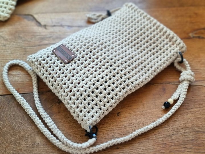 Meine Tasche ist mit doppeltem Garn Melissa Platinum Cotton aus 100% Baumwollgarn gehäkelt. In einem Strang 75 gr 150 m.