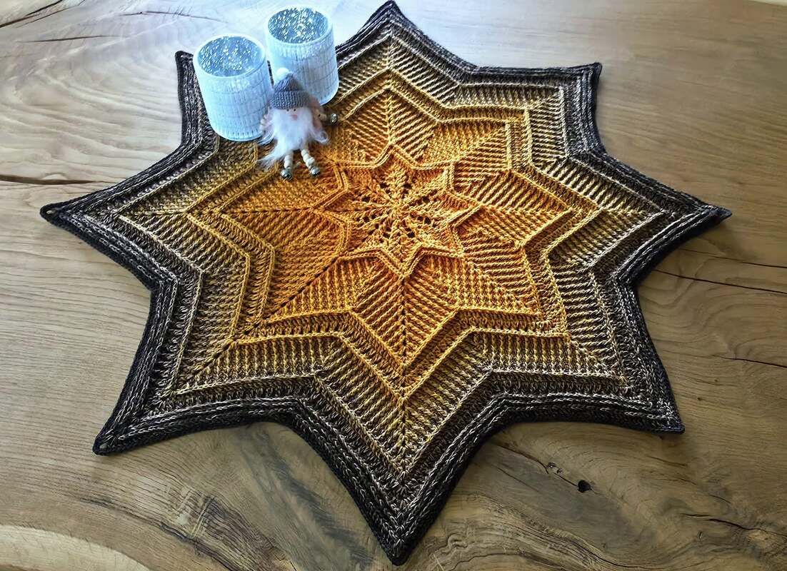 Die Anleitung "Abendstern" ist vielseitig verwendbar, ob als Tischdecke in unterschiedlichen Größen, als Mandala oder als Babydecke, der Stern wird sicher die Blicke auf sich ziehen oder ist ein tolles Geschenk an Weihnachten.