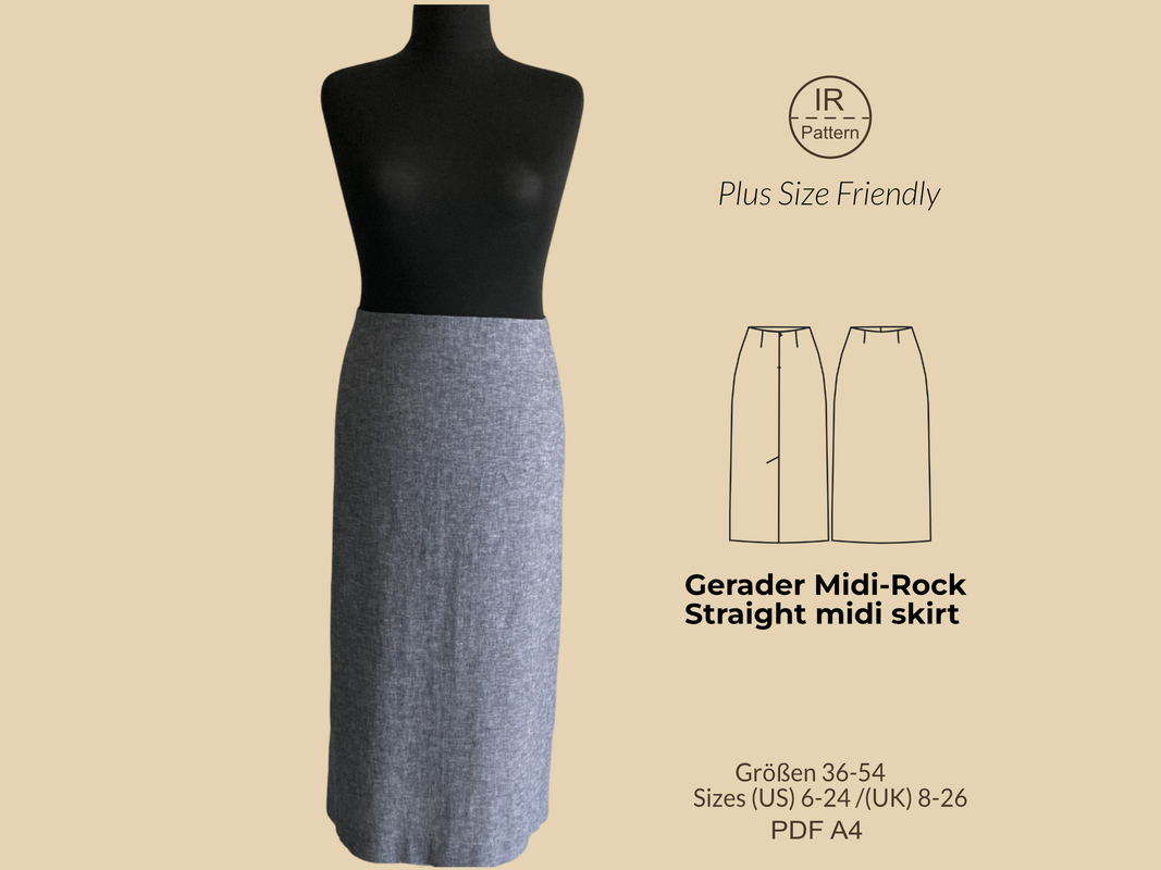 PDF Schnittmuster gerader Rock ohne Bund mit verdecktem Reißverschluss und Schlitz hinten.