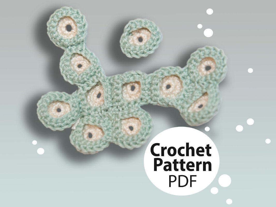 BoxfishHandicraft Häkelanleitung für die Koralle Micromussa, die du in der Größe deiner Wahl häkeln kannst (PDF-Datei / 7 Seiten).